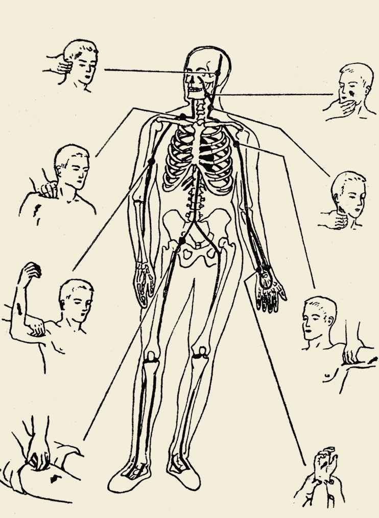 Tugeva arteriaalse verejooksu ajutiseks peatamiseks kaelal, pea piirkonnas ning jäsemetel tuleb arter esmalt käega kokku suruda. See toimub veritsevast piirkonnast südame pool kindlates anatoomilistes punktides (vt joonis), kus artereid saab kergesti palpeerida ja vastu luud kokku suruda. Meetodi puuduseks on tugev valu survekohas, samuti tõsiasi, et arterit on võimalik kinni suruda ainult lühikeseks ajaks, sest see nõuab tugevat füüsilist pingutust. Niimoodi tehakse vaid esmaabi esimestel hetkedel.