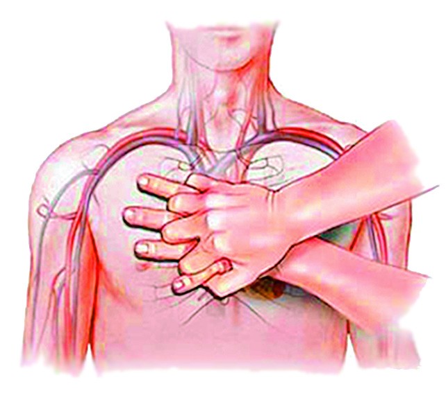 – hingata uuesti sisse ja korrata kunstlikku hingamist, seejärel asetada viivitamatult oma käed kannatanu rindkerele korrektsesse elustamisasendisse (mida on eespool kirjeldatud) ja sooritada 30 järgnevat kompressiooni;